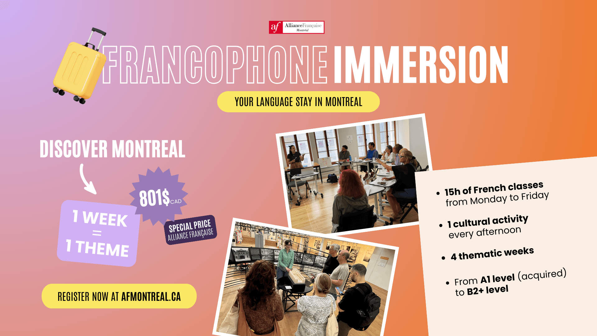- Live an unforgettable experience at the Alliance Française de Montréal.