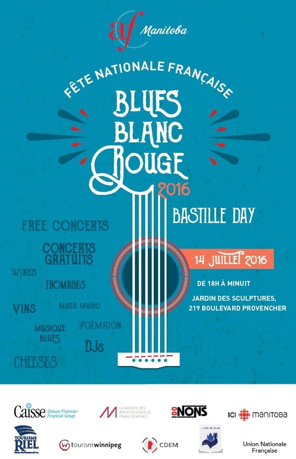 Blues, Blanc, Rouge is the name of our special event at the Alliance française of Manitoba for Bastille Day (July 14th), since 2016! This year, the open-air event will take place on the Esplanade Riel.