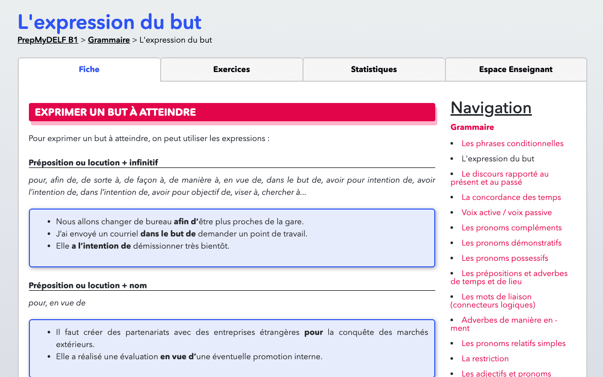 More than 60 lesson sheets on DELF methodology, conjugation, grammar and vocabulary