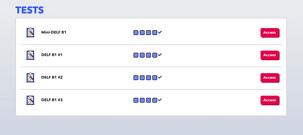Purchase the preparation code below for the DELF of your choice. You have to purchase either the DELF B1 or the DELF B2 preparation. You cannot change the level of preparation after the purchase.