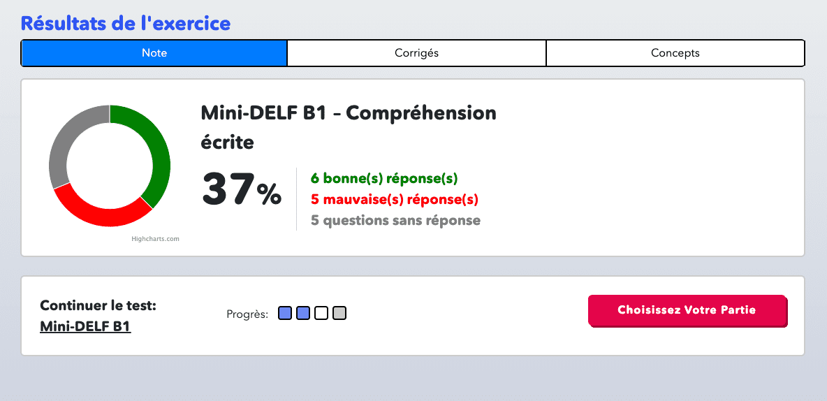 More than 1300 exercises for DELF B1 and 1700 exercises for DELF B2 included in our DELF training with detailed explanations in French.