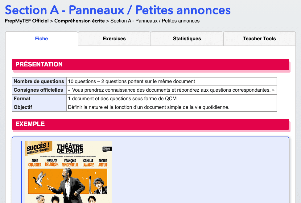 More than 1500 exercises included in our TEF or TCF training with detailed explanations in both French and English.