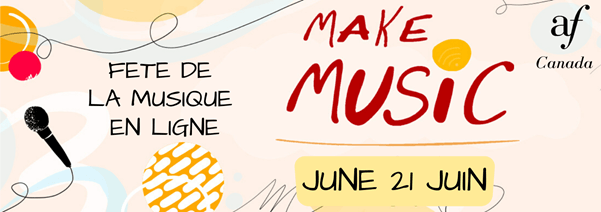 La Fête de la Musique Canada est un événement organisé conjointement par les 9 Alliances Françaises canadiennes, pour se rassembler de la côte Est à la côte Ouest du pays… et au-delà ! Le 21 juin, le public a pu se balader en accès libre entre 4 scènes virtuelles présentant plus de 20 artistes pendant près de 8 heures de concerts ! Fête de la Musique Canada se veut une plateforme de promotion de la musique dans sa diversité de styles, un soutien aux artistes amateurs et professionnels, et une vitrine de la diversité ethnique et linguistique du Canada.
